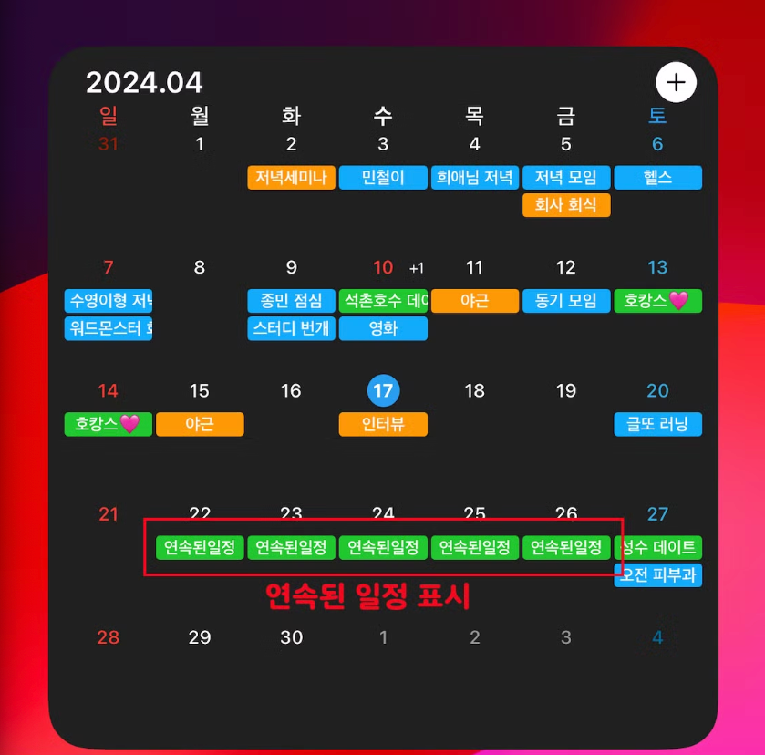 連続したイベントをウィジェットで一つのブロックとして表示する機能は、現在開発中です。もう少しお待ちいただければと思います!