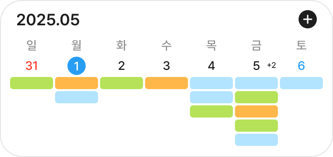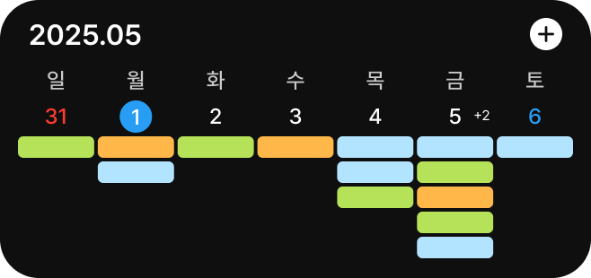이번 주의 중요한 약속 등, 놓치고 싶지 않은 날을 작지만 효율적인 주간 뷰로, 바쁜 한 주를 더 스마트하게 관리해보세요.